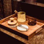 • Place a decorative tray on your vanity to hold perfumes, lotions, and small accessories. It adds a polished look and keeps things tidy.